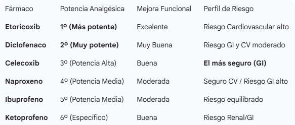 Para dolor inflamatorio crónico (Artrosis): El Etoricoxib es el más potente, pero debe ser supervisado si tienes la tensión alta².