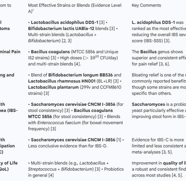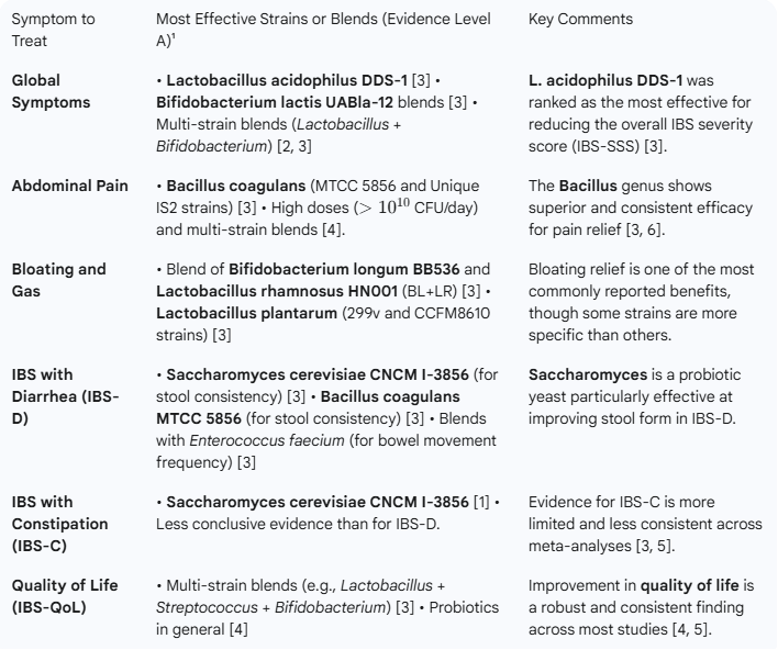 Probiotic Efficacy Table for IBS (Based on Network Meta-Analyses)