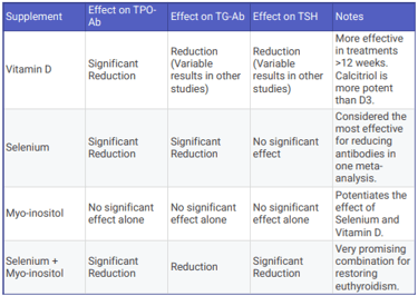 Selenium: Consider daily supplementation with 200 µg of selenomethionine, the most proven strategy for reducing TPO-Ab and TG-Ab.